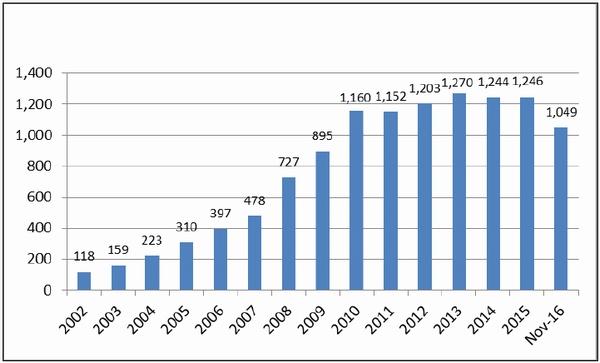 Figure 11. China's Holdings of U.S. Treasury Securities: 2002-November 2016
