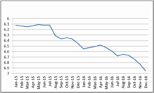 Figure 15. RMB-Dollar Exchange Rates: January 2015 to December 2016