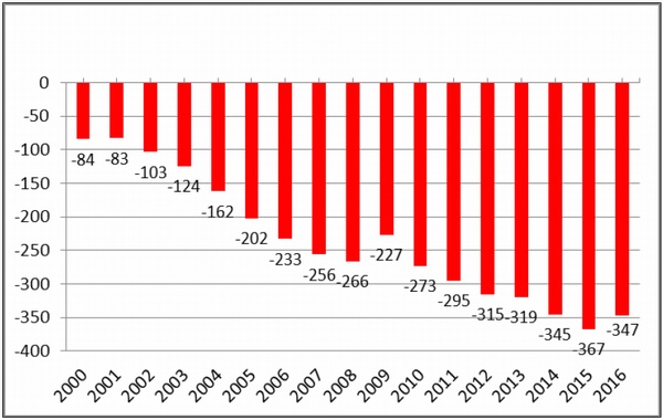 Figure 4. U.S. Merchandise Trade Balance with China: 2000-2016