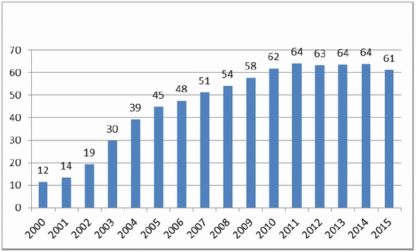 Figure 8. U.S. Computer Imports from China as a Percentage of Total U.S. Computer Imports: 2000-2015