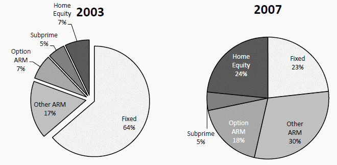 Even before it received formal Board approval, Washington Mutual had begun shifting its loan originations toward higher risk loans. By 2007, rising defaults and the collapse of the subprime secondary market prevented WaMu from fully implementing its plans, but it did have time to shift the composition of the loans it originated and purchased, increasing the percentage of higher risk home loans from at least 19% in 2003, to over 47% in 2007. |616|