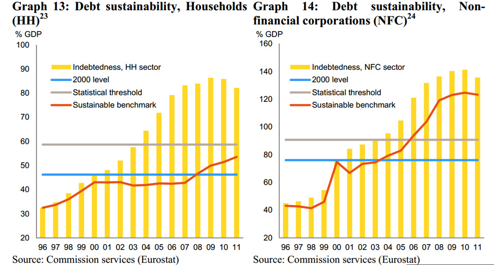 Su conclusión es que el alto volumen de deuda privada es un lastre para el crecimiento de la demanda interna (consumo público, privado e inversiones) y una fuente de vulnerabilidad, agravado por la rigidez de los mercados de bienes y servicios. Sobre todo teniendo en cuenta la persistencia de elevadas primas de riesgo que encarecen no sólo la financiación del Tesoro, sino también los costes del sector privado.