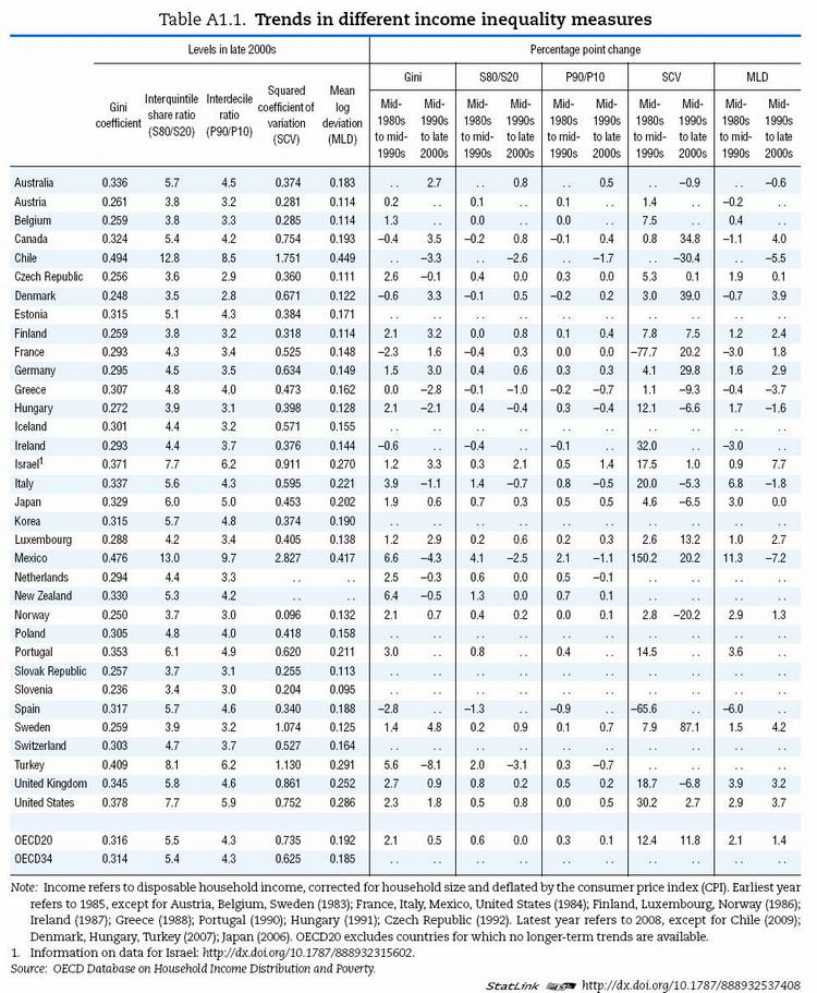 4. Of course, "inequality" can also be framed in a broader sense than income, e.g. inequality in consumption, or inequality of resources, including assets and wealth. This report is, however, concerned with income inequality and its subaggregates. [Back]