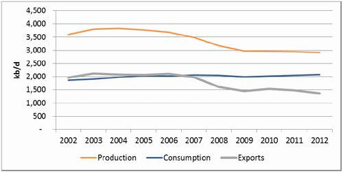 Figure 1. Mexican Oil Production, Consumption, and Exports