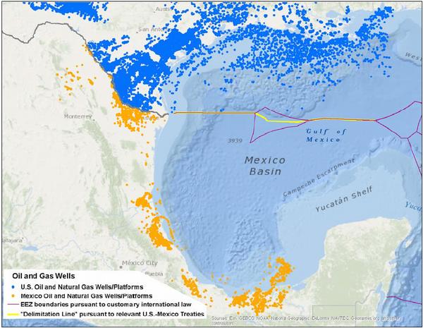 36. For background, CRS Report R43204, Legislation Proposed to Implement the U.S.-Mexico Transboundary Hydrocarbons Agreement, by Curry L. Hagerty and James C. Uzel. [Back]