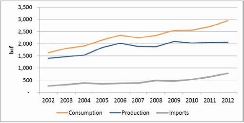 Figure 4. Mexican Natural Gas Production, Consumption, and Imports