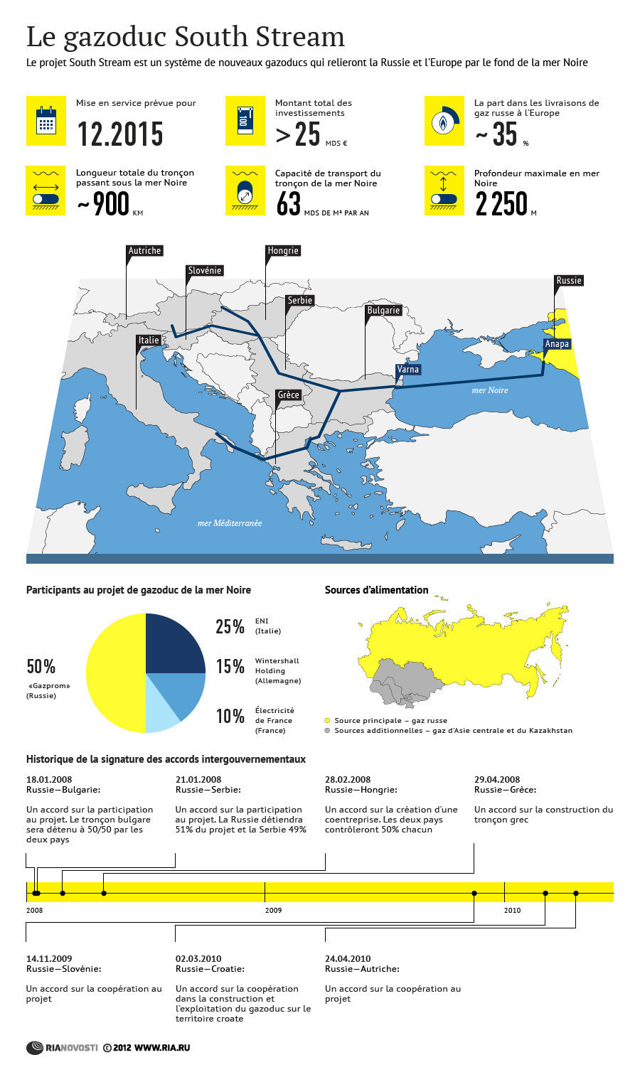 Début décembre 2012, la Commission européenne avait soudainement annoncé que les accords intergouvernementaux sur le projet de gazoduc russe South Stream allaient à l'encontre de la législation européenne et devaient être revus. Il était alors question des contrats signés par la Russie avec la Bulgarie, la Serbie, la Hongrie, la Slovénie et la Croatie.
