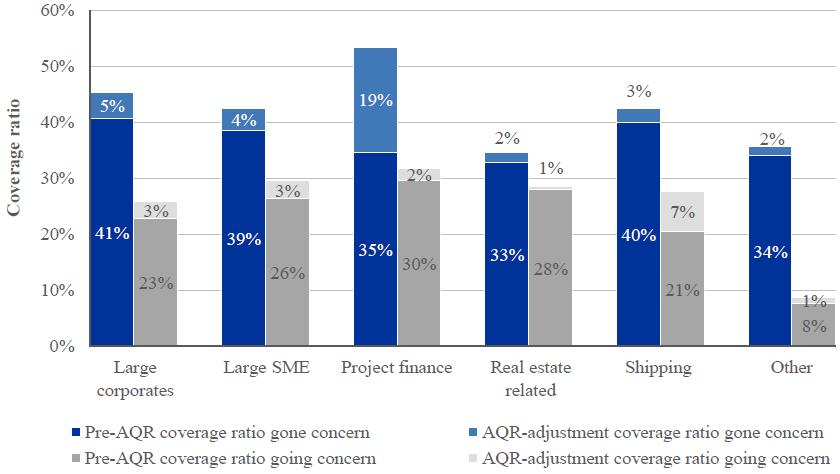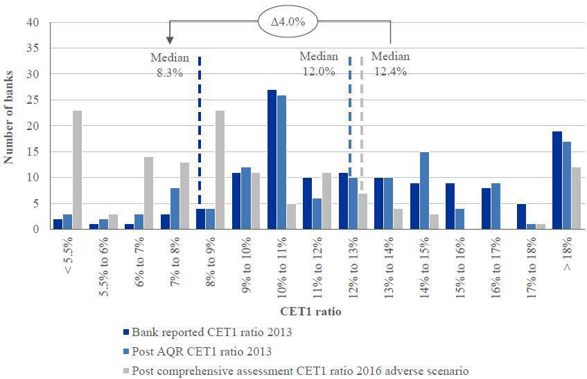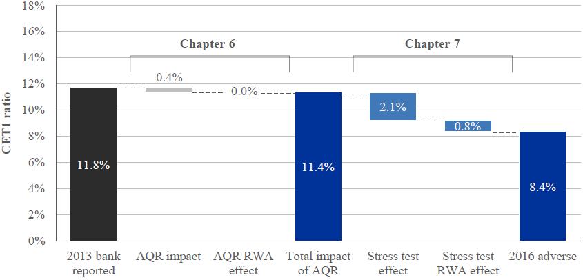 Click to enlargeIn addition to adjustments made directly to current carrying values, the AQR result was also reflected in the projection of banks' capital adequacy under hypothetical scenarios performed in the stress test.