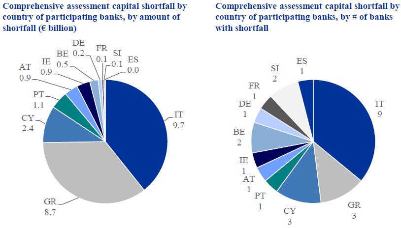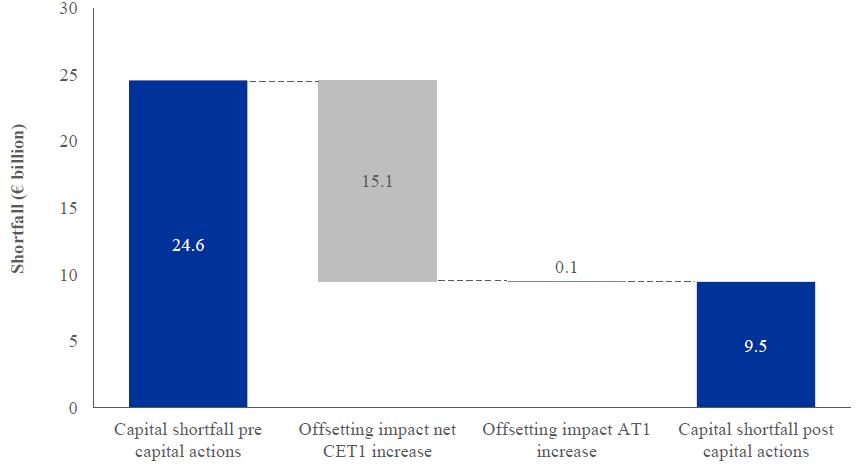 Overall, the comprehensive assessment identified a capital shortfall of €24.6 billion across 25 participating banks after comparing these projected solvency ratios against the thresholds defined for the exercise. |9|