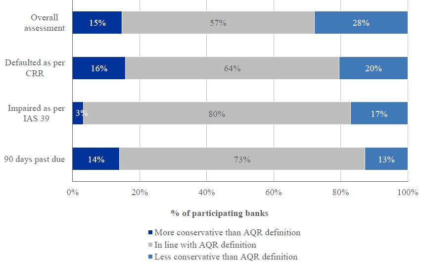 The exercise was based on the Capital Requirements Regulation and Directive (CRR/CRD IV), on the definition of regulatory capital as of 1 January 2014. Under the AQR, banks were required to have a minimum Common Equity Tier 1 (CET1) ratio of 8%.