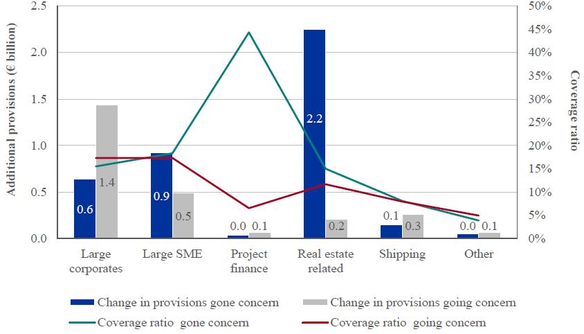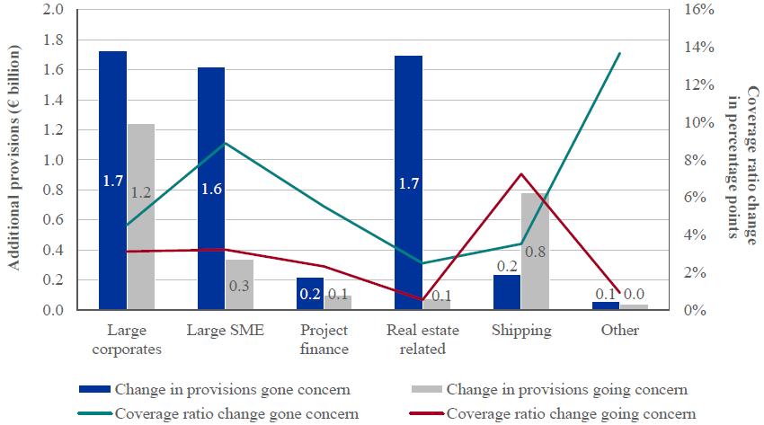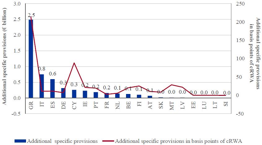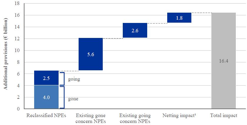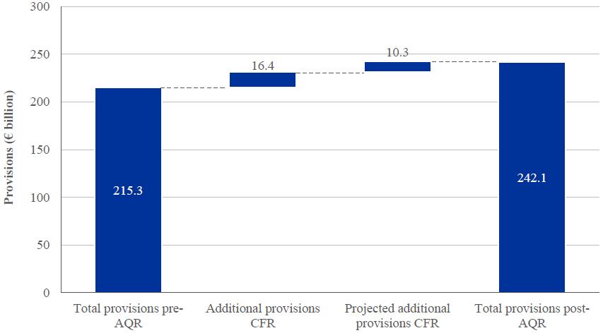 70. This represents the final credit file review impact which is factored into the final AQR-adjusted CET1 ratio for each bank. The netting impact described in Section 3.3.1 means overall portfolio provisions cannot decrease as a result of the AQR. Therefore, the individual components discussed in the rest of this section for the credit file review do not reconcile with this total increase in provisions. [Volver]