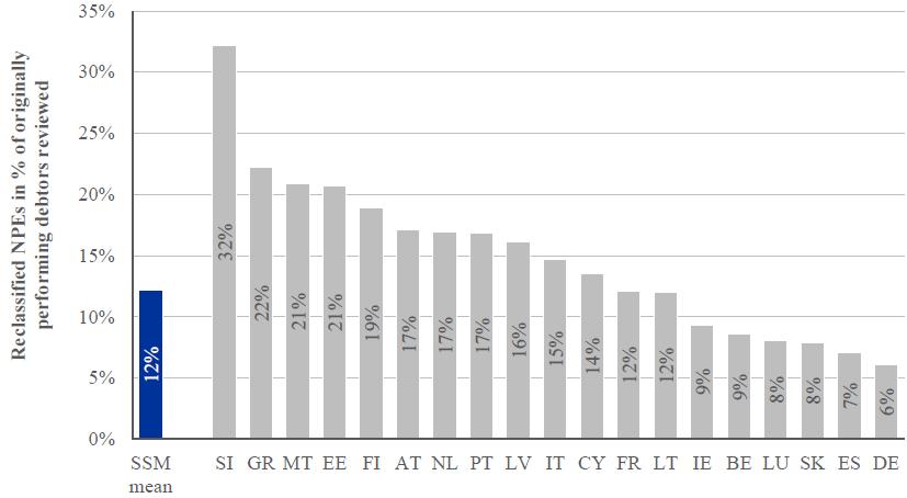 The prudential and accounting implications will be assessed by the SSM's new Joint Supervisory Teams (JSTs) along with the qualitative conclusions of the exercise regarding, for example, the soundness of banks' internal processes. This will mean that even where banks do not reflect adjustments in their accounts all conclusions will be captured in ongoing supervision and in supervisory capital requirements. As Figure 1 shows, the AQR adjustments differ by jurisdiction as consistent standards have been applied where previous approaches may have diverged.