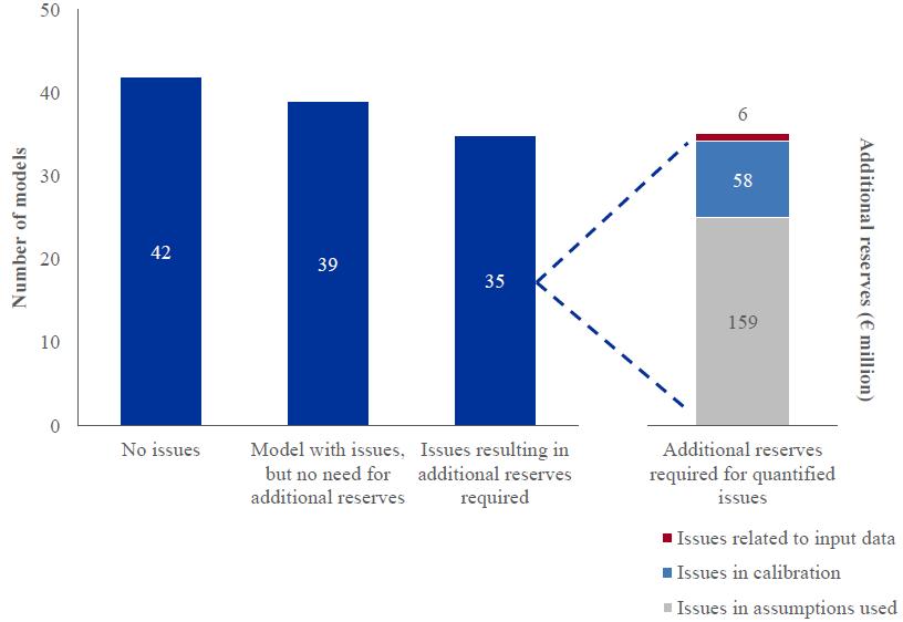Within the AQR, a detailed asset-level review was performed for over 800 specific portfolios making up 57% of the banks' risk-weighted assets. This resulted in the detailed analysis of more than 119,000 borrowers; the assessment of the valuation of about 170,000 collateral items; the building of 765 models to "challenge" the banks' own estimates of collectively assessed provisions and over 100 models to assess their CVA calculation; the revaluation of over 5,000 of the most complex fair value exposures; and the review of over 100 complex valuation models. This in-depth review employed over 6,000 experts at its height.