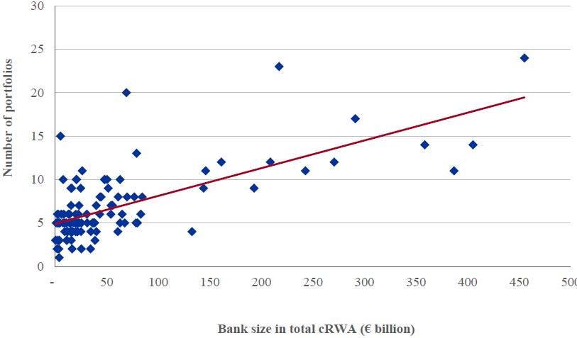 24. Defined by both size and level of portfolio granularity - individually more than 2% of the bank's cRWA and of the correct granularity (sovereign, supra-national, retail SME, retail other, residential real estate, state-owned enterprises, shipping, aviation, project finance, corporate real estate-related, large corporate, large SME, and securitisations). [Volver]