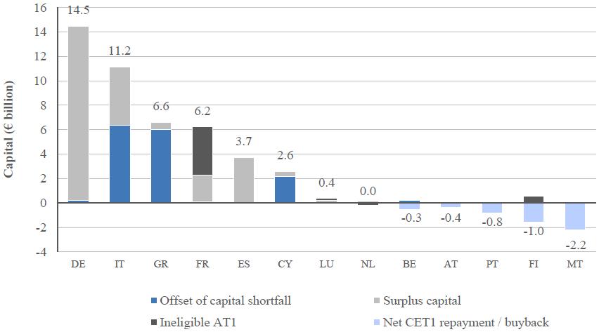 Figure 4 Comprehensive assessment capital shortfall by country of participating bank