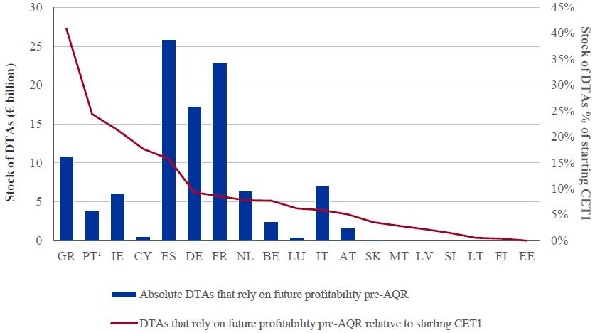 107. It should be noted that the transitional adjustments shown for Greek and Portuguese banks do not take into account the effect of changes in national law related to the treatment of deferred tax assets which took place in 2014. [Volver]