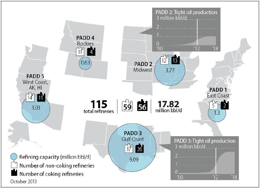 Figure 3. Oil Refining Capacity and Coking Refinery Capacity by PADD