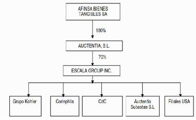 En la fecha de la intervención judicial, junto con sus empresas participadas, AFINSA se configuraba como un grupo de sociedades que desarrollaba diversas actividades: la actividad de "inversión filatélica dirigida" en España y Portugal, la actividad del coleccionismo, mediante su participación indirecta en Escala Group Inc. (antes GMAI) a través de la sociedad Auctentia S.L.U. (el Grupo ESCALA, hasta el año 2005 Grupo GMAI, estuvo participado por AFINSA de forma mayoritaria desde el año 2003 a través de su filial Auctentia S.L.U.) y la actividad del Arte. Esquemáticamente el grupo se configuraba de la siguiente forma: