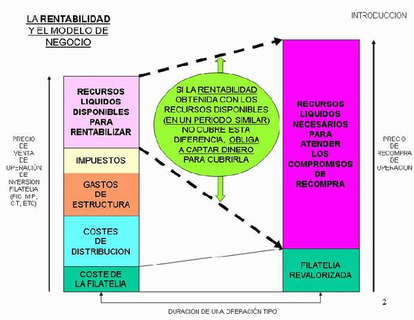 En efecto, AFINSA compraba la filatelia a las sociedades de GUIJARRO LAZARO a un 8% de su valor de catálogo en el Yvert & Tellier. La vendía al cliente al 100% de su valor y la filatelia, suponiendo que fuera la filatelia auténtica y no la "irregular" que en realidad suministraban estas empresas, se revalorizaba en el catálogo en torno al 3,11% anual, mientras que AFINSA garantiza a su cliente una rentabilidad mínima del 7% anual. Bajo estas condiciones, si un cliente quiere invertir 1.000 euros en un contrato CIT de 12 meses y un día, AFINSA adquiere en el mercado mayorista una filatelia que la cuesta 80 euros y obtiene un beneficio de 920 euros. Pero al año siguiente AFINSA debe hacer frente a su compromiso, recomprando la filatelia al cliente y abonando por ella un total de 1.070 euros, obteniendo así unas pérdidas de 987,51 euros. La operación de venta y posterior recompra se salda con una pérdida total de 67,51 euros. Para que AFINSA en el año 2 pudiera al menos evitar pérdidas al vencimiento del contrato, como mínimo el sello que recupera el año 2 debería alcanzar en el mercado externo de donde procede un valor de 150 euros, es decir, debería de revalorizarse por término medio la filatelia en un año un 87,5%, revalorización totalmente impensable que se pudiera realizar y por término medio para toda la filatelia. Si en el año 2 AFINSA renueva este contrato al mismo cliente o a otro y no incrementa el número de contratos que comercializa, su resultado seguiría siendo negativo ya que tendría que seguir pagando unos intereses del 7% sobre 1.070 euros, muy superiores a la revalorización de la filatelia del 3,11% sobre 82,49 euros. Es decir, si solo se comercializase un contrato año a año las pérdidas serían mayores.