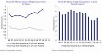 19. A decomposition of exports growth shows a modest, but positive product composition effect (a 0.2 pps.) indicating a relative specialization in sectors facing growing world demand. However, Spain demonstrates a weak specialization in several important sectors characterized by a dynamic global demand (such as chemicals, office, and telecommunications machinery). [Back]