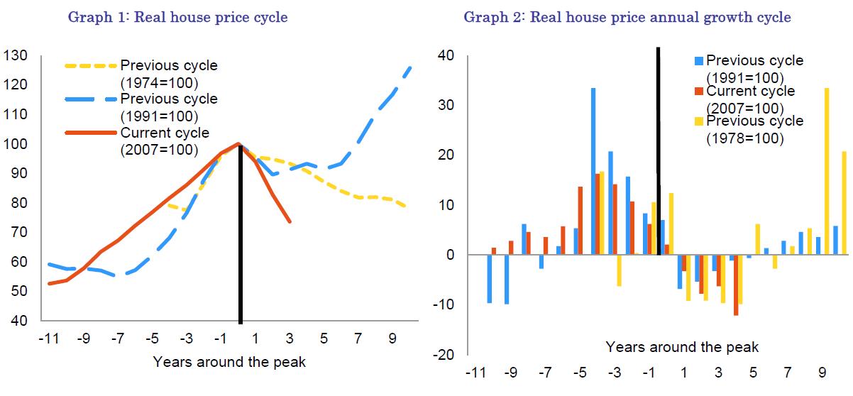 The extended housing and credit booms between 1997 and mid-2008 were associated with the accumulation of various imbalances including: excessive weight of the construction sector, excessive credit growth to the private sector, sustained loss of competitiveness and, finally, excessive reliance on external financing. The turning point had already been reached in late-2006 and early-2007. Interest rates started increasing in 2006, which, combined with the already high degree of household indebtedness, led to an easing of demand for housing and credit. By that time, the affordability ratio associated with buying a house had increased to 46% of household disposable income (compared to 28% in 1999). This also affected private consumption, which started to decelerate in 2007. As the economy still grew by close to 4% in 2007, the adjustment was relatively soft. However, the economic and financial crises in 2008 triggered a much sharper correction. While some imbalances adjusted very rapidly, others were more persistent. Moreover, additional imbalances started to emerge in the wake of the crisis, notably in the labour market and with regards to public finances.