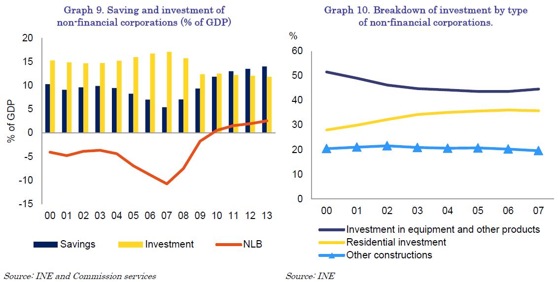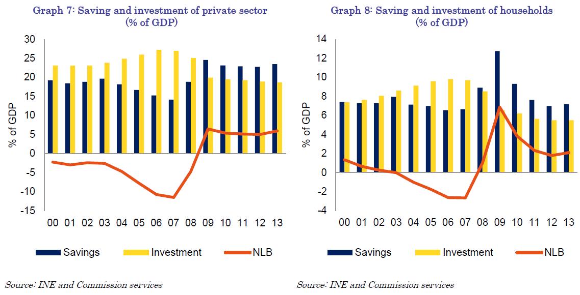 Increasing reliance on external financing to cover the large saving-investment gap has increased the vulnerability of the Spanish economy, in particular to external financing conditions and the interest rate changes. Indeed, this vulnerability has been illustrated by the recent episodes of large private capital outflows, which may be characterised as sudden stops (see Section 3.3.2 on external debt sustainability for more details). While the adjustment is on-going with both households and non-financial corporations moving into a net lender position, the speed of the adjustment of stocks has been rather slow. In that respect, policy challenges include increasing the savings rate and reducing some of the existing incentives for investment in the residential sector. Addressing these challenges would facilitate further rebalancing.