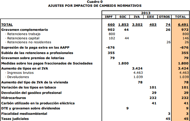 Hacienda asegura, precisamente, que gracias a la subida de impuestos (tanto del IRPF como del IVA) la recaudación no ha caído más pese al hundimiento de las bases imponibles. Y habla de que gracias a los "cambios normativos", la diferencia entre el descenso de las bases y la evolución de los ingresos homogéneos ha supuesto unos ingresos adicionales de 6.491 millones. Ahora bien, este cálculo no tiene en cuenta el efecto procíclico sobre la actividad -en este caso en sentido negativo- que ha tenido el incremento de los tipos impositivos.