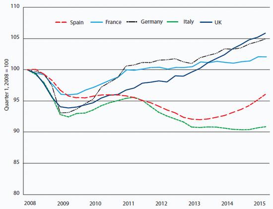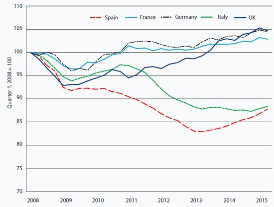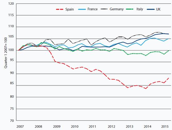 Chart 2: Spanish real GDP still well below pre-crisis level