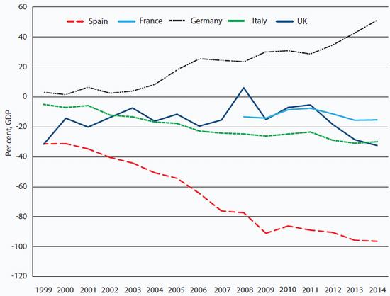 Spain's return to economic growth is certainly not the result of austerity. There is little doubt that there were formidable cutbacks in Spain earlier in the crisis, but the pace of austerity had eased off by the second half of 2013 and fiscal policy has been mildly expansionary since the beginning of 2014. Nor was it possible for Spain to ease off the austerity because its fiscal deficit had fallen to under 3 per cent of GDP: Spain's fiscal deficit was 6.8 per cent of GDP in 2013 and 5.8 per cent in 2014, the biggest in the EU. The recovery in business investment certainly cannot be attributed to fiscal consolidation opening the way for a recovery in business confidence, as per the austerian narrative. Rather, the easing of austerity appears to have paved the way for a return to growth.