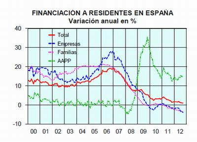 Si la reforma del sistema financiero tenía un objetivo ("lograr que el crédito vuelva a las familias y las empresas", en palabras del ministro De Guindos) lo cierto es que nueve meses después, nada de nada. El crédito no sólo no se ha recuperado, sino que, por el contrario, cae en picado. Hasta el extremo de que en septiembre, según los datos del propio Ministerio de Economía, la financiación al sector privado ha retrocedido un 6% en términos reales. Es decir, sin inflación.