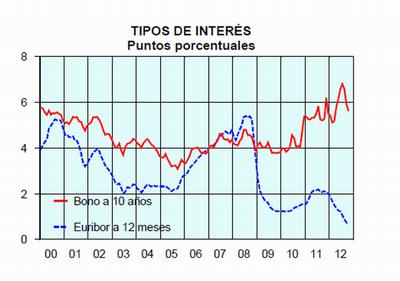 El racionamiento del crédito se produce, además, en un contexto de descenso de los tipos de interés. Los últimos datos oficiales reflejan que el tipo medio de los préstamos a hogares se situó en septiembre en el 3,18%, por debajo del 3,46% de 2011.
