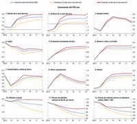 14. Las definiciones regionales son las utilizadas en el capítulo 2. No se estiman los efectos derivados en Oriente Medio y Norte de África debido a la falta de datos trimestrales sobre el PIB. Como los datos trimestrales sobre África subsahariana incluyen solo Botswana y Sudáfrica, debe considerarse que las estimaciones reflejan efectos derivados únicamente en las economías abiertas de ingreso mediano de la región. [Volver]