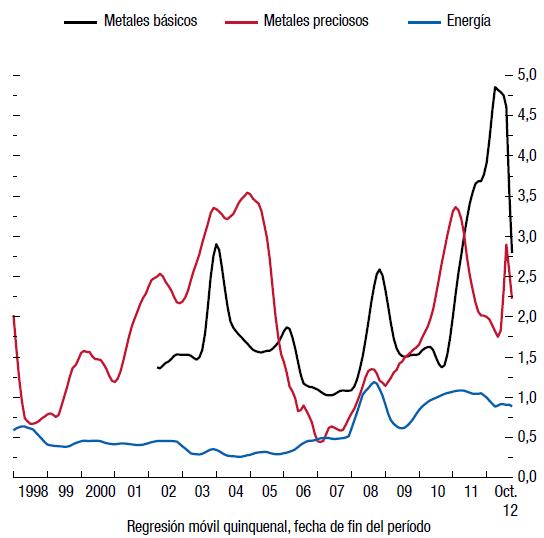 5 Sobre la base de desviaciones respecto de la relación (de cointegración) estimada entre la producción industrial y las ventas minoristas a escala mundial.