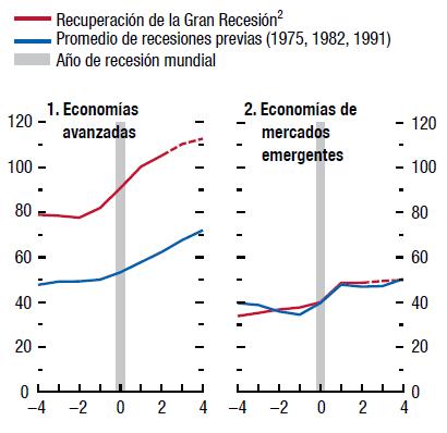 PERSPECTIVAS Y POLÍTICAS MUNDIALESLas perspectivas mundiales han vuelto mejorar, pero el camino hacia la recuperación en las economías avanzadas seguirá siendo accidentado. Se pronostica que el producto mundial crecerá 3¼% en 2013 y 4% en 2014 (cuadro 1.1). Se prevé que en las principales economías avanzadas la actividad se acelerará gradualmente, tras un inicio débil en 2013, con Estados Unidos a la cabeza. En las economías de mercados emergentes y en desarrollo, la actividad ya ha repuntando. Las autoridades en las economías avanzadas han conjurado dos de las principales amenazas que pesaban sobre la economía mundial: una ruptura de la zona del euro y una brusca contracción fiscal en Estados Unidos provocada por una caída en el "abismo fiscal". Sin embargo, persisten riesgos viejos y hay riesgos nuevos que han pasado a primer plano. A corto plazo, los riesgos están vinculados sobre todo a la evolución de la zona del euro, incluida la incertidumbre por las secuelas de los acontecimientos en Chipre y la situación política en Italia y los factores de vulnerabilidad en la periferia. A mediano plazo, los riesgos clave guardan relación con la fatiga del ajuste, una reforma institucional insuficiente y un estancamiento prolongado en la zona del euro, así como elevados niveles de déficit fiscal y endeudamiento en Estados Unidos y Japón. En este entorno, las autoridades no pueden cejar en sus esfuerzos. En las economías avanzadas, el enfoque macroeconómico adecuado sigue siendo un ajuste fiscal gradual pero sostenido, basado en medidas que limitan los daños a la actividad y una política monetaria acomodaticia destinada a respaldar la demanda interna. Estados Unidos y Japón aún tienen que formular y ejecutar planes firmes de consolidación fiscal a mediano plazo, mientras que la zona del euro tiene que reforzar la Unión Económica y Monetaria (UEM). En las economías de mercados emergentes y en desarrollo, la aplicación de políticas algo más restrictivas parece ser la medida correcta a mediano plazo. Este ajuste debe comenzar por la política monetaria y debe estar respaldado con medidas prudenciales necesarias para contener excesos que empiezan a observarse en los sectores financieros. Con el tiempo, las autoridades también deberían lograr que los saldos fiscales retornen a los niveles saludables registrados antes de 2008, recomponiendo así un amplio margen de maniobra para la aplicación de políticas. Algunos países tendrán que tomar medidas significativas ahora, en tanto que otros solo necesitarán mejoras leves a mediano plazo.