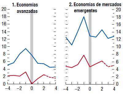 Fuentes: Markit/Haver Analytics y cálculos del personal técnico del FMI. Nota: No todas las economías están incluidas en los agregados regionales. En los casos de ciertas economías, los datos mensuales se interpolan a partir de series trimestrales.