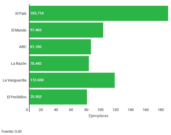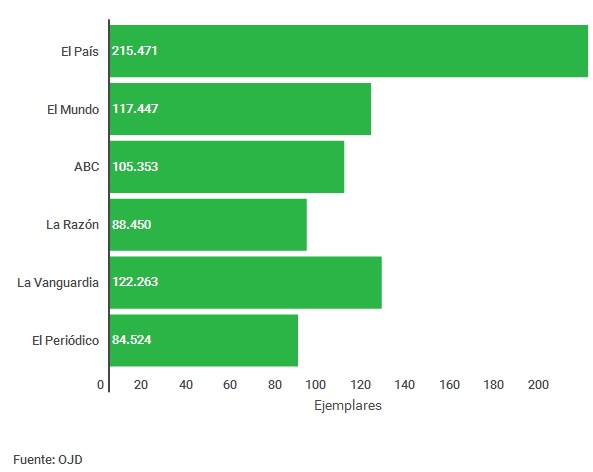 El pasado enero, El País, El Mundo, ABC y La Razón difundieron, en conjunto, 440.806 ejemplares, es decir, 28.000 menos de los que lanzaba solo El País en 2006.