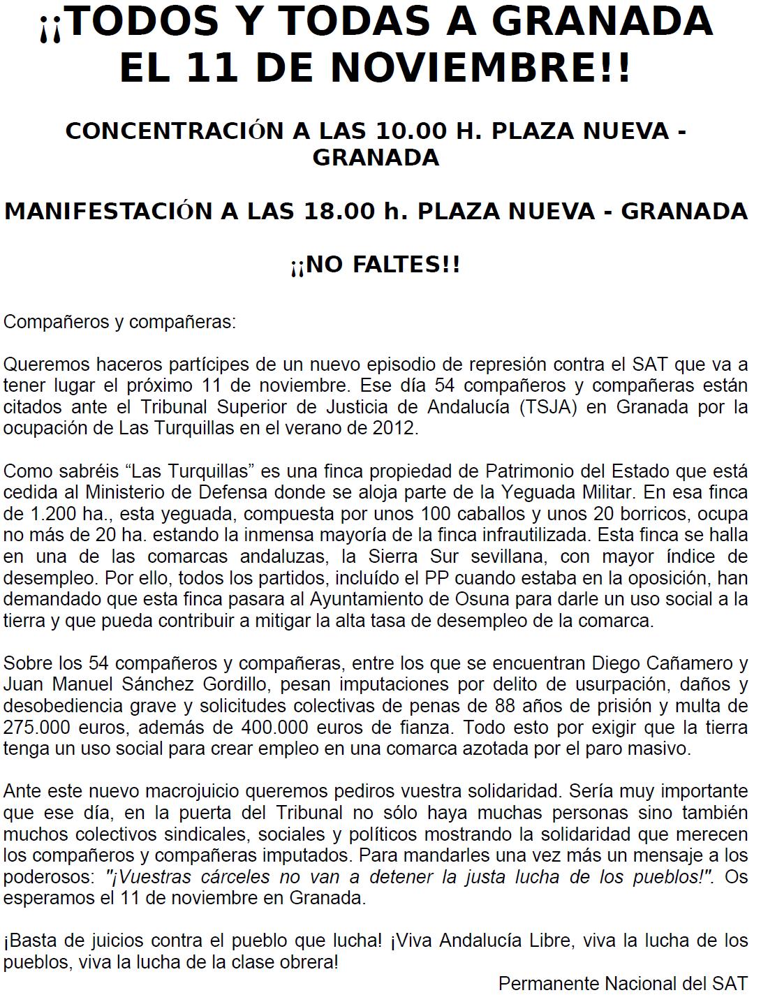 Auto declarando la apertura de juicio oral contra 34 sindicalistas por la concentración efectuada en la finca "La Jarilla"