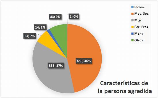 6. El hecho de que una persona pueda pertenecer a dos categorías a la vez (menor/migrante, migrante/movilización social, etc.) supone que la suma de las personas afectadas en cada categoría supere el total de personas recogido en el informe. Los porcentajes se han obtenido sobre el total de personas afectadas, incluidas las duplicidades. [Volver]