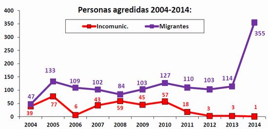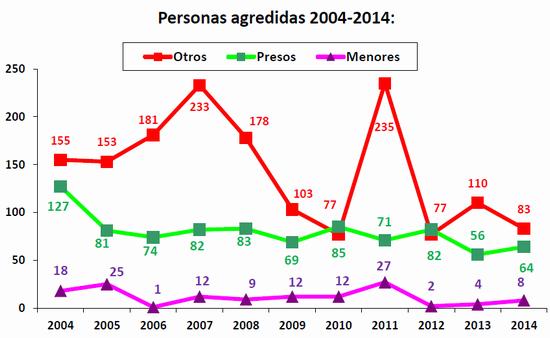 En el informe de este año recogemos 194 situaciones en que se produjeron agresiones, torturas y/o malos tratos a un total de 961 personas.