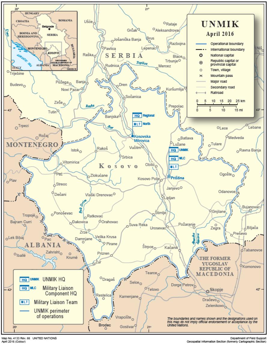 Composición y dotación del componente de policía y el componente de enlace militar de la Misión de Administración Provisional de las Naciones Unidas en Kosovo al 15 de abril de 2016