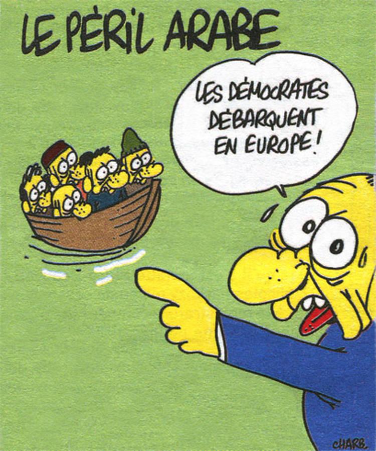 Pero su marca registrada eran los personajes de color amarillo (similar al de los Simpson), pero de ojos saltones. En noviembre de 2011 era el director cuando publicaron la caricatura de Mahoma que después terminó con un ataque a la sede de la revista y un incendio. Charb solía decir que las polémicas caricaturas eran "totalmente halal", una palabra árabe que se usa para mencionar a cosas permitidas por el Islam.