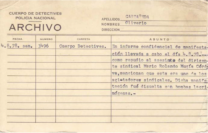 Óp.cit., GT PN 49-02 S004 12.08.1980, oficio No. 561/fvn., dirigido al l Director General de la PN, remitió el Jefe del Gabinete de Identificación [Registro interno AHPN 31062]. [Volver]
