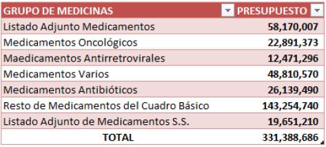 5. El Hospital tiene L. 9, 000,000 en el rubro de medicamentos para todo el resto del año, cantidad que es insuficiente, puesto que sólo en 16 medicamentos de los 121 tipos de medicamentos considerados indispensables dentro del cuadro básico del hospital y que incluyen oncológicos, trasplante renal, anestesia para cesáreas, sueros para pacientes, que significan L. 3, 115,750 (tres millones ciento quince mil setecientos cincuenta) para un mes de atención.