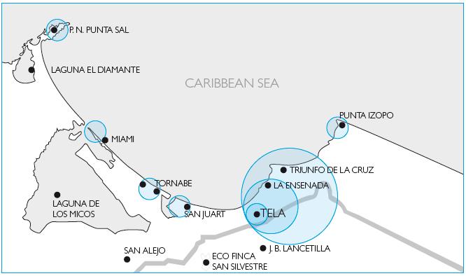 123. El 20 de junio del 2011 constituían: Santa Bárbara, San Francisco de Ojuera, Atima, San José Colinas, Jesús de Otoro, San José de la Paz, San José de Comayagua, Chinacla, Ajuterique, Teupasenti, Yorito Yoro, Belén Gualcho, Ocotepeque; El Rosario Comayagua; Mapulaca Lempira; Arenales Santa Bárbara. [Volver]