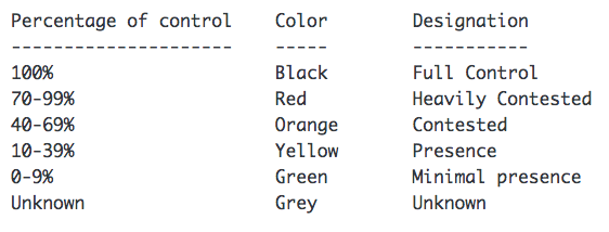 FDD's Long War Journal mapped the Taliban's report (see map above) and color-coded and categorized the districts as follows: