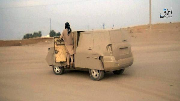 Not all of these VBIEDs are as heavily armored as the one used in the coalition's training. For example, the vehicle shown below was also allegedly used as a vehicle bomb, according to Amaq. Such smaller vehicles may increase the jihadists' maneuverability on the battlefield.