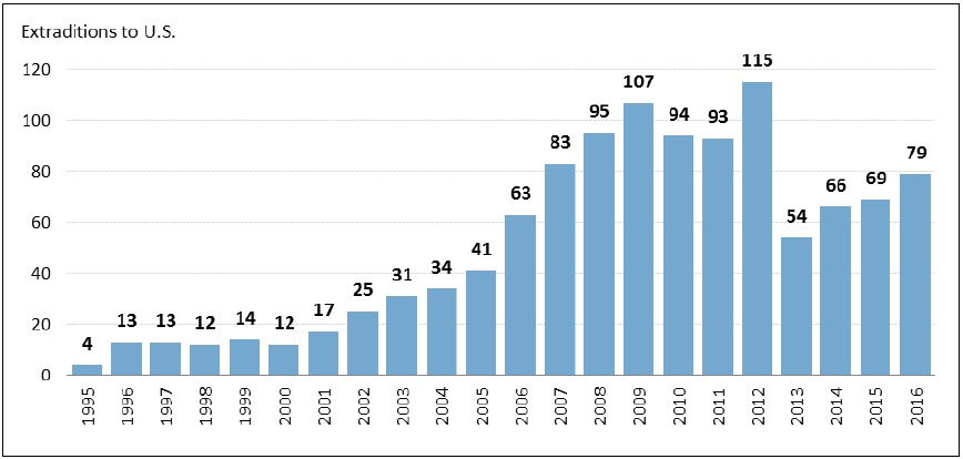 95. As a result of a U.S.-Mexican Bilateral Human Trafficking Enforcement Initiative in effect since 2009, some 170 individuals have faced U.S. federal indictments. See U.S. Department of Justice, U.S. Attorney's Office, Eastern District of New York, "Eight Members Of Mexican Sex Trafficking Enterprise Plead Guilty To Racketeering, Sex Trafficking, And Related Crimes," April 21, 2017. [Back]