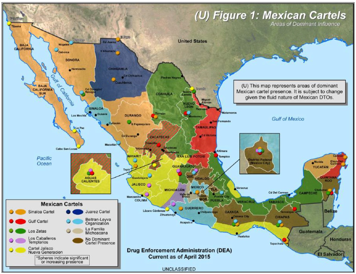 Figure 2. 2015 Map of DTO Areas of Dominant Influence Developed by the U.S. Drug Enforcement Administration