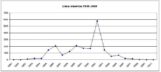 Perú 1980-2000: Cantidad de muertos y desaparecidos en áreas urbanas reportados a la CVR según