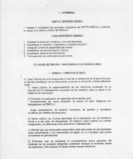 1. Impedir o neutralizar las acciones irregulares de SINTRAEMCALI y obtener su apoyo a la visión y misión de EMCALI.
